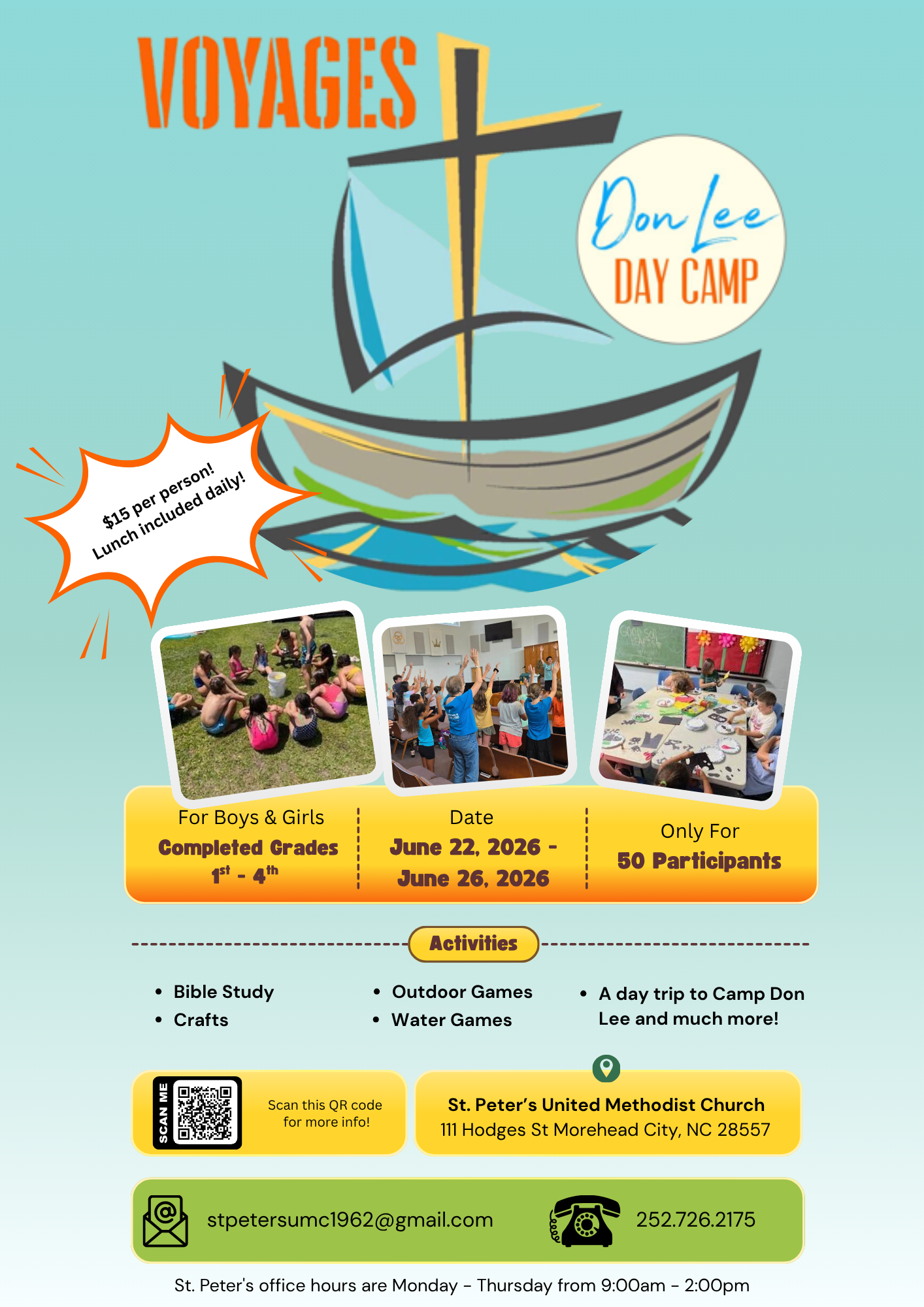 - Cost per camper is $15 for the entire week.